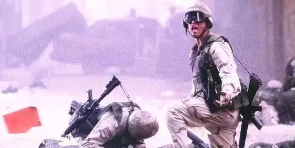奔跑而來的人物和飛馳而去的汽車之間的連接,首先讓奔跑而來的人物越跑越近,直至充滿整個畫面,使畫面變成黑色,然后連接上后續(xù)的鏡頭。